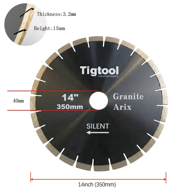 14" 350mm Granite Arix Silent Blade Height 15mm Wear-Resistant Arix Segments Wear Resistant High Sharpness Diamond Blade