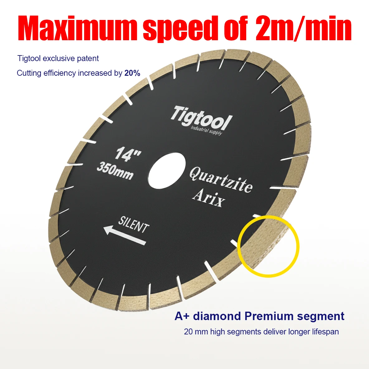 14" 350mm Quartzite Arix Silent Blade Tigtool Specialized Cutting Blades Designed for Natural Taj Mahal and Sea Pearl Quartzite
