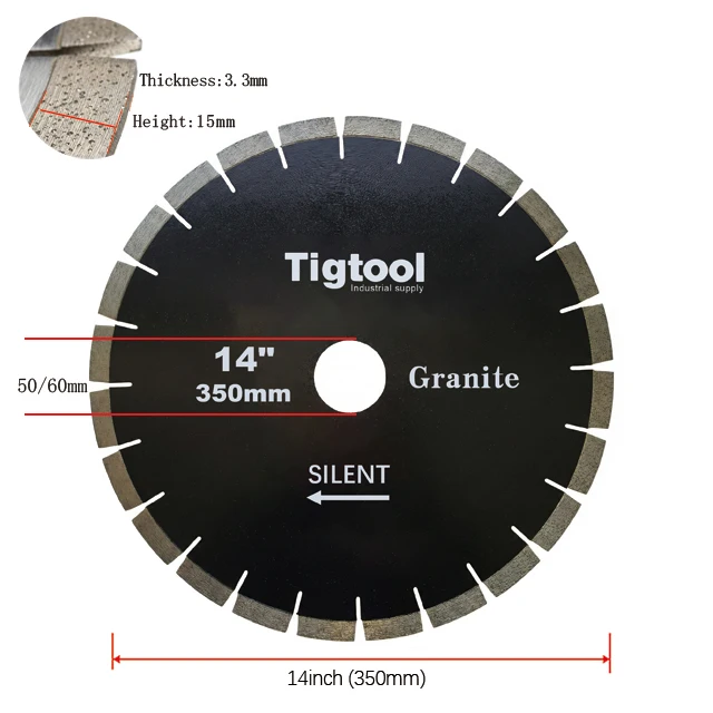 14" 350mm Silent Granite Cutting Saw Blade For Hard Stone Tiles Slabs Sharp & Wear-Resistant Segmented Long-Life