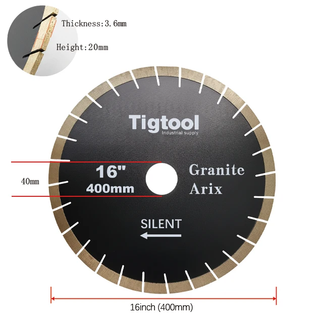 16" 400mm Granite Arix Silent Blade Height 20mm Wear-Resistant Arix Segments Wear Resistant High Sharpness Diamond Blade