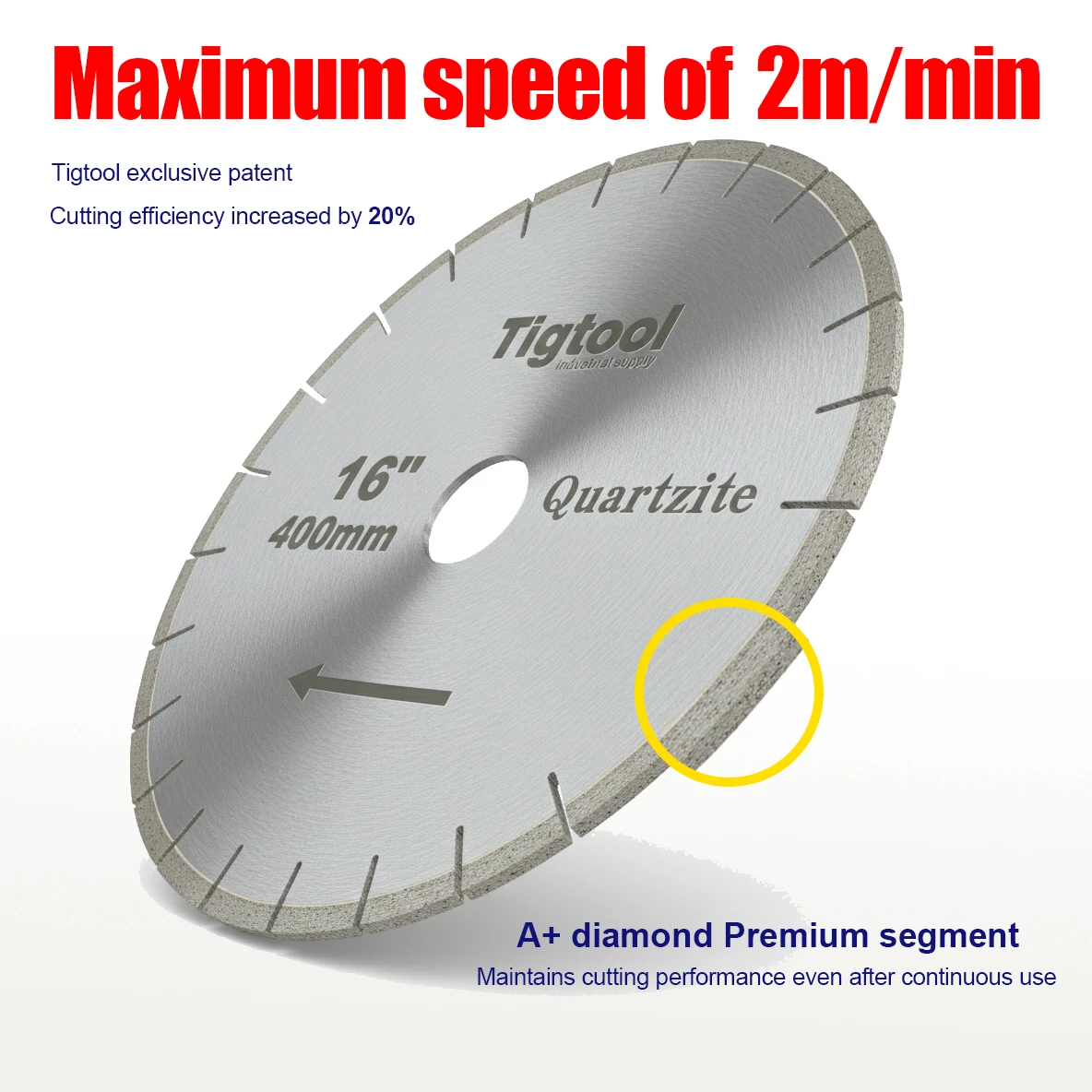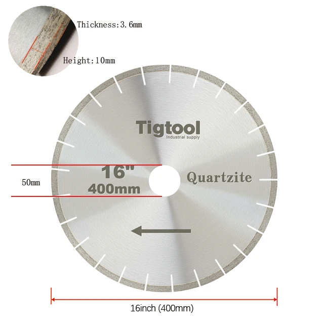 16" 400mm Quartzite Blade Tigtool Specialized Cutting Blades Designed for Natural Taj Mahal and Sea Pearl Quartzite