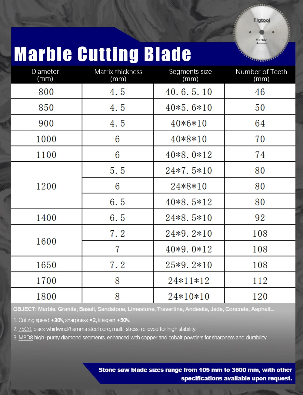 Tigtool A+ Premium Ultra-Sharp and Highly Wear-Resistant Marble Cutting Blade