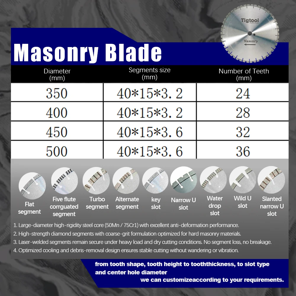 Tigtool Saw Blade Specialized for Masonry/Brick/Concrete/Reinforced Concrete Cutting