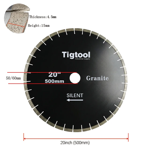 20" 500mm Silent Granite Cutting Saw Blade For Hard Stone Tiles Slabs Sharp & Wear-Resistant Segmented Long-Life