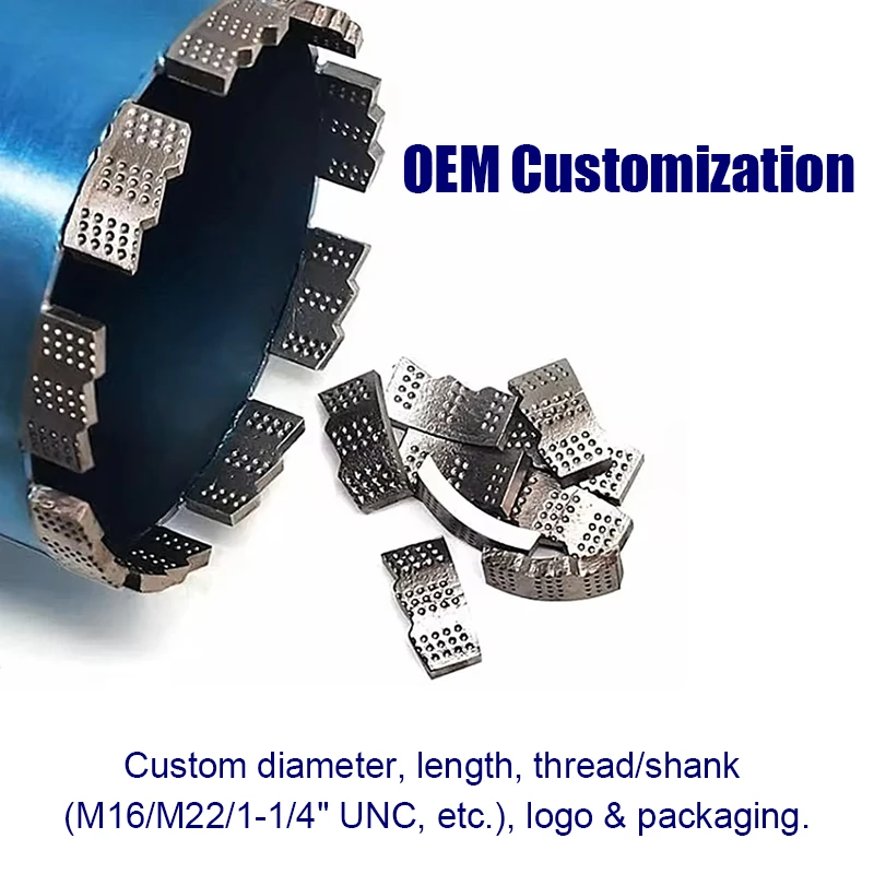 Dry/Wet Diamond Core Drill Bit for Reinforced Concrete Masonry Laser Welded Segmented Slotted Fast Drilling OEM